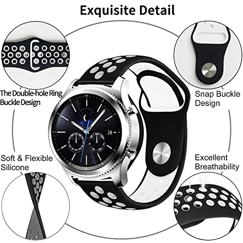 Lonkenn - سوار رياضي جيد التهوية من السيليكون بابزيم وازرار كباسة وفتحة مزدوجة لساعة هواوي ووتش GT3 برو 46 22 ملم-GT3-جالاكسي 3 45 ملم لون اسود للكبار الجنسين