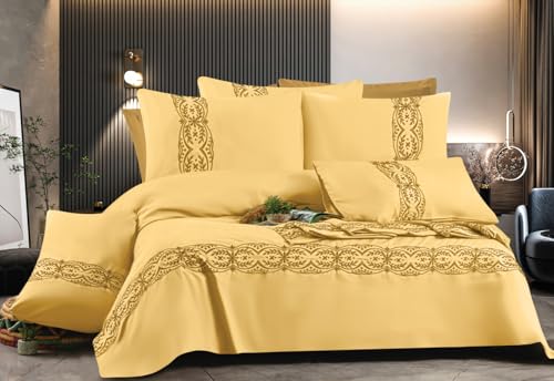 Generic - طقم غطاء للسرير، مصنوع من القماش، باللون البرتقالي، مقاس ملكي، بنمط مطرز