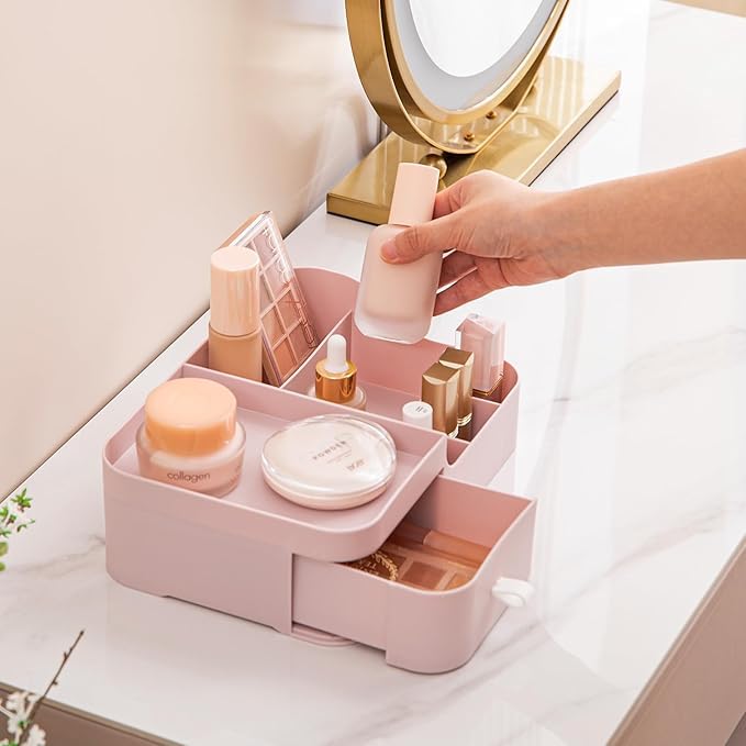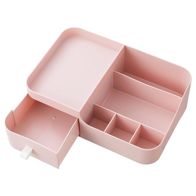 Generic - منظم مكياج مع درج، صندوق تخزين مستحضرات التجميل، وردي، 25.4 × 6.9 × 7.1 سم