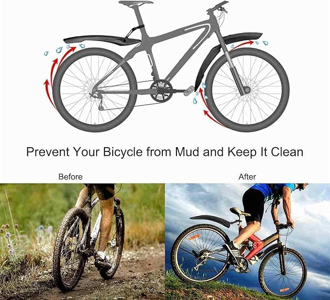 Generic - رفرف درجة جبلية-واقي الاتربة و الوحول احمي دراجتك و ملابسك - امامي وخلفي للدراجات 26 ل 29 و النيجر و البي ام اكس (ابيض - اسود)
