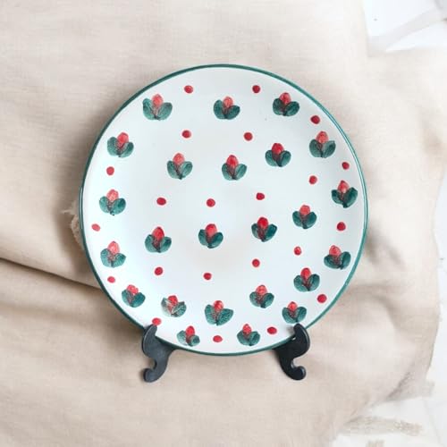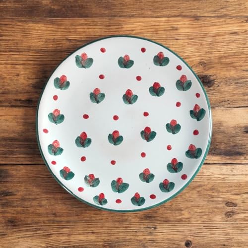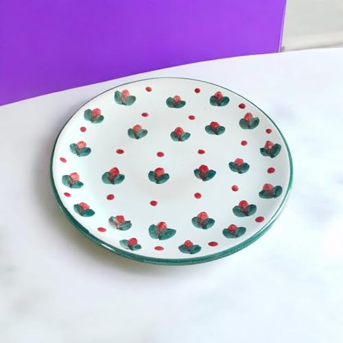 Generic - طبق من الفخار و الخزف لتقديم الطعام و للديكور امن داخل الافران و الميكروويف رسم يدوي مستدير (طول 27 ) tab46