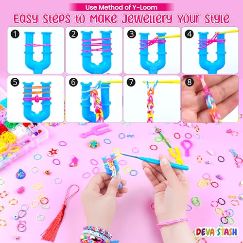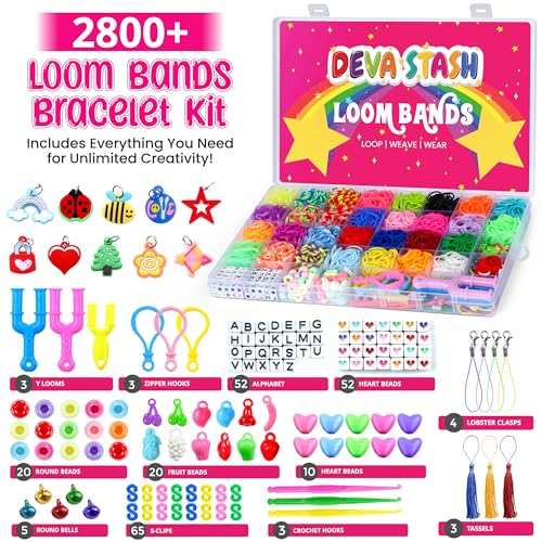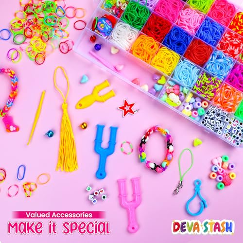 DEVA STASH - مجموعة أكثر من 2800 رباط لوم، بـ30 لون للفتيات، تشمل مشابك وزخارف وخرز وجميع الاكسسوارات، مجموعة لصناعة أساور الصداقة بنفسك، مناسبة كطقم للحرف اليدوية