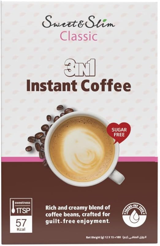 Generic - سويت اند سليم قهوة سريعة التحضير 3 في 1 خالية من السكر - صندوق كلاسيكي (12 كيس)
