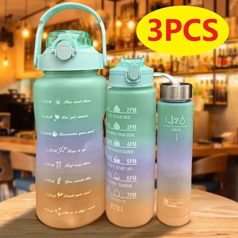 Generic - زجاجة مياة رقمية 3 * 1 مزودة بـ 2 شفاطة متعدده الاستخدامات للجيم والنوادي والرحلات والعمل، طقم كامل لن تحتاج غيره (زجاجه كبيرة بسعة 2 لتر وزجاجه بسعة 1 لتر وزجاجه بسعة نصف لتر)