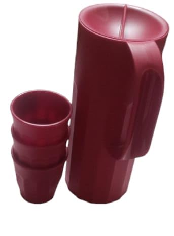 Generic - طقم دورق و3 أكواب للعصائر والمشروبات الدورق 1.4 لتر الكوب 175 مللى خمري بلاستيك