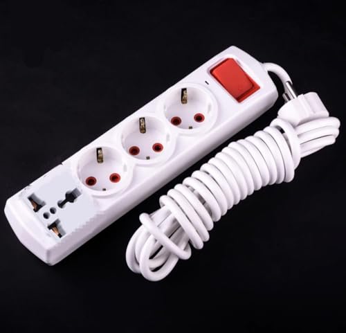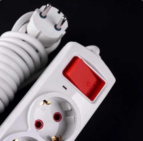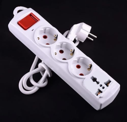 Generic - مشترك كهرباء ب 3 عين مجوفه بسدادات للامان +1 عين mk بسلك بطول 3 متر بمفتاح للتشغيل ولمبة اشاره -يمكن تعليقه على الحائط (4, أمتار)