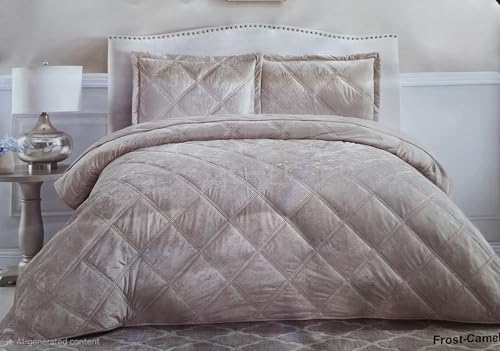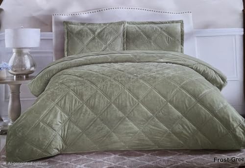 Generic - طقم كوفرته قطيفه عالمية مزدوجة 3 قطع (كوفرته طول:240*عرض 240 سم+2 كيس مخده طول:70*عرض 50 سم)-متعدد الالوان (زيتونى)