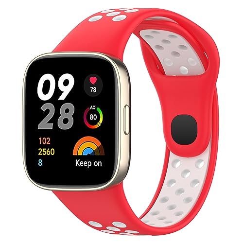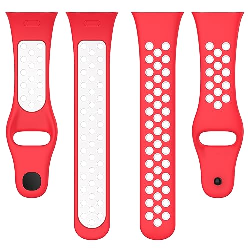 ELMO3EZZ - سوار لساعة شاومي ريدمي 3 ووتش لايت [التهوية] سيليكون ناعم بديل بلونين من السيليكون المعز احمر @ ابيض شريحة واحدة
