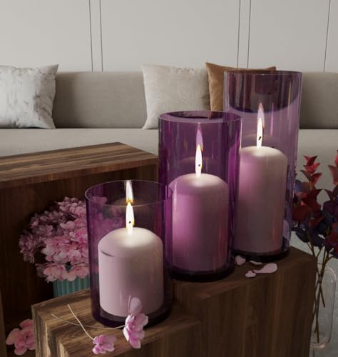 Generic - 3 قطع اسطوانات زجاج حامل شموع ارتفاعات مختلفه متعدده الالوان مناسبه لديكور الغرف وسطح الطاوله (فوشيا)
