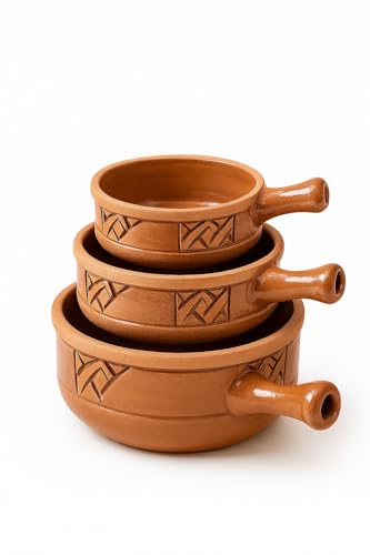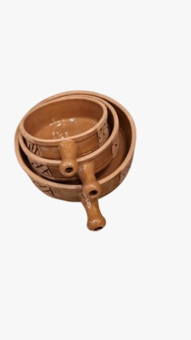 Generic - فخار (3-قطع طقم مقلاية فخاريه فوق النار وداخل الافران وتستخدم طاسه للتحمير لون بني معا هاند)