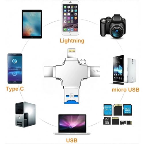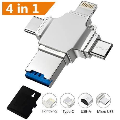Generic - قارئ بطاقات او تي جي 3 في 1، جهاز محمول متعدد الوظائف متوافق مع اي او اس واندرويد ومنفذ نوع سي ومايكرو واضاءة ويدعم الصور ومقاطع الفيديو والمستندات