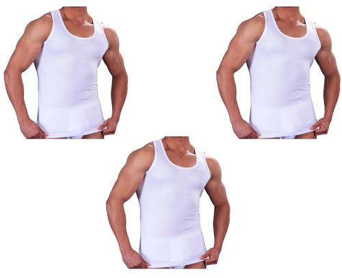 Royal Tex - 3 قطع تيشيرتات حمالات رجالي ابيض 100% قطن مصري ناعم