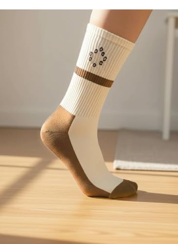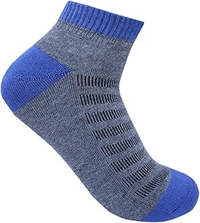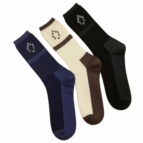 Generic - جوارب رجالية قطنية بطول الكاحل، متعدد الألوان (أزرق داكن، بيج، أسود)، نصف بطانة، تصميم مخطط مع شعار مطرز، 3 أزواج