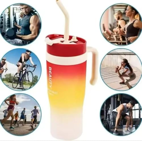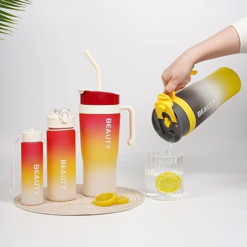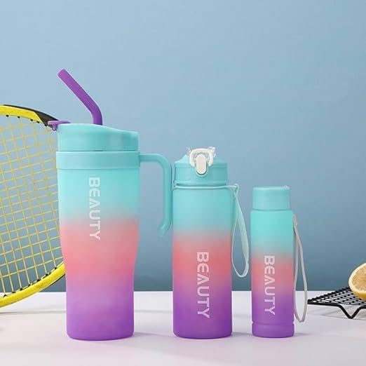 Generic - زجاجات زجاجات مياه مكونة من 3 قطع تتميز بقشة - سعة كبيرة وأكواب رياضية ملونة للياقة البدنية والتخييم والحفلات - مقاومة للانسكاب للوازم المدرسية مصنوعة من مادة PPA