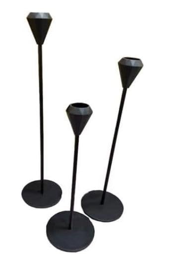 - طقم شمعدان مكون من ثلاث قطع كبير وسط و صغير على شكل جوهره مصنوع من المعدن لون اسود مات مناسب للمكتب او المنزل ديكور منظر جميل ومتناسق