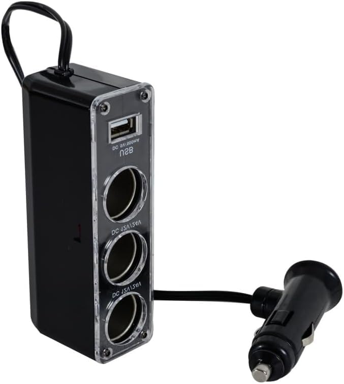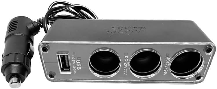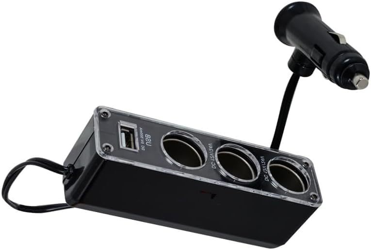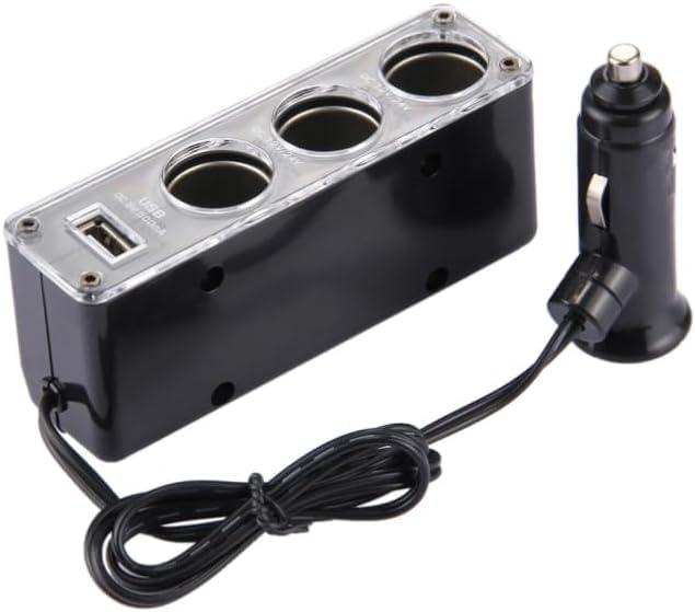 Generic - شاحن سيارة موسع 3 مدخل الثلاثي سيارة ولاعة السجائر السيارة قوة تيار مستمر منفذ محول USB شحن (3عين-1USB ، كود : 1002) من نسمه ستور