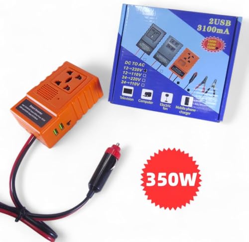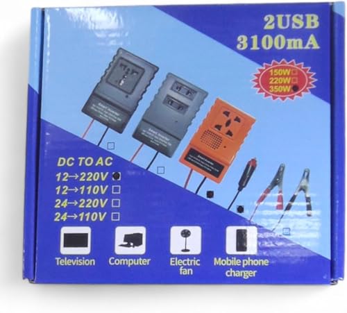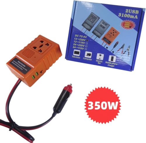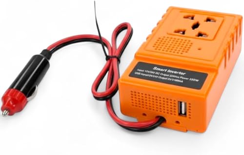 Generic - محول طاقة سيارة ذكي بقدرة 350 واط – محول كهرباء متنقل يحول من 12 فولت الى 220 فولت مع مخرجين فيشة كهرباء و2 منفذ USB للشحن السريع 3.1 امبير – محول تيار للسيارة للسفر والرحلات والاجهزة المحمولة