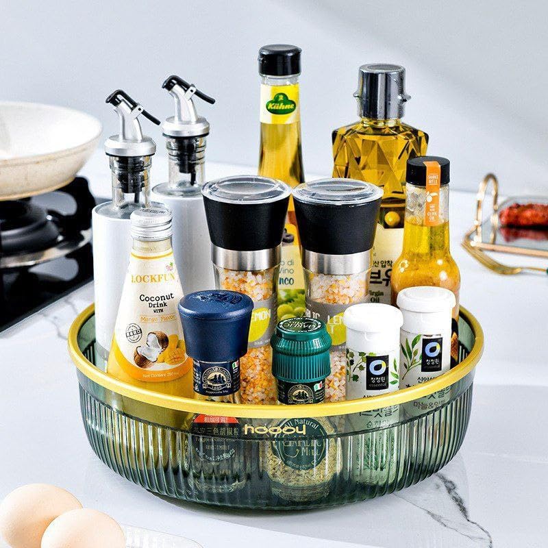 Spaceshoop - منظم دوار 360 درجة مع 7 أقسام قابلة للإزالة مقاس 30 سم شفاف للخزانة والطاولة والمكياج وسطح الطاولة والثلاجة ورف التوابل وتنظيم المطبخ والتخزين - أخضر