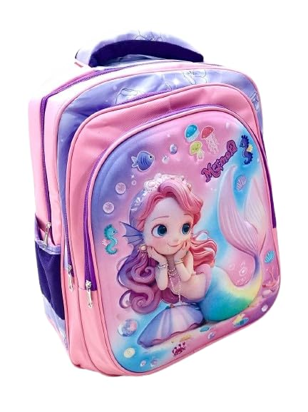 Generic - حقيبة مدرسه للأطفال، شنطه بناتي 3D، تصميم كرتوني بنت لون بينك فى ازرق ، مع سحاب - مقاس 18 - موديل رقم #: 573