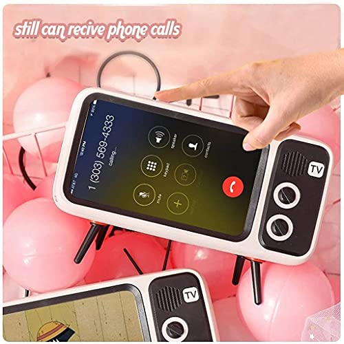Generic - حامل موبايل ومكبر صوت بلوتوث ستيريو ثلاثي الابعاد لون ابيض