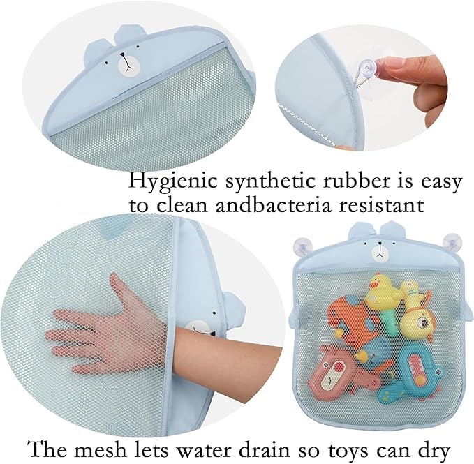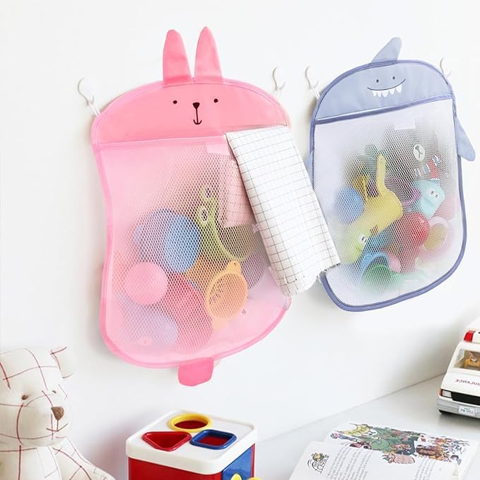 - 【التصميم】يمكن لتصميم الهيكل الشبكي الفريد أن يجفف الألعاب والأشياء بسرعة أكبر لتجنب العفن الفطري وتكاثر البكتيريا، تصميم شبكي يجعل جميع الألعاب مرئية بسهولة، سيساعدك التصميم الكرتوني اللطيف بشكل كبير على تنمية عادة طفلك الجيدة في تخزين الألعاب بعناية، يمكن لأطفالك الصغار الحصول على الألعاب ووضعها مرة أخرى في الشنطة الشبكية بشكل مريح للغاية، مما يقلل من مجهود الأم.