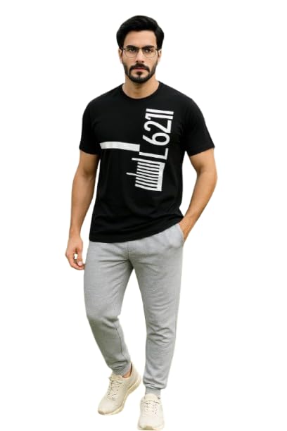 Generic - بيجامه رجالى صيفي - تيشرت قطن سينجل ليكرا و بنطلون سمر ملتون - لون أسود -مقاس 3XL - موديل رقم #: 467-716