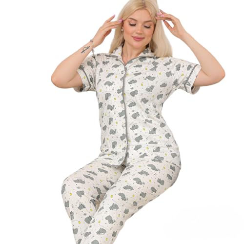 Generic - طقم بيجامة قطن كلاسيك بازرار للنساء، ونصف اكمام مطبوعة من القطن، مكون من قطعتين بيجامة مريحة متعددة الالوان بسيطة وفريدة للنساء، 3xl-L