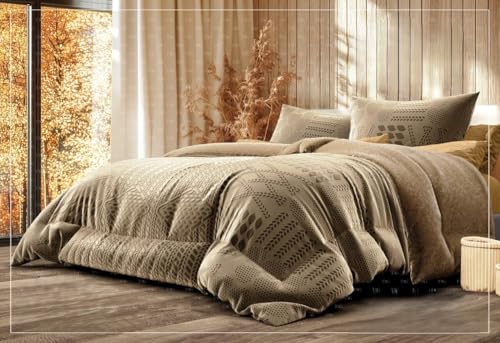 Generic - لحاف قطيفة منقوش بحفر ليزر - 4 قطع - وجه قطيفة حفر ليزر - ظهر فرو كثيف عالي الجودة لتوفير تدفئة عالية - حشو فايبر حراري - 1 لحاف فايبر مقاس كينج 240*260 - 2 خدادية 55*75 (كافيه)