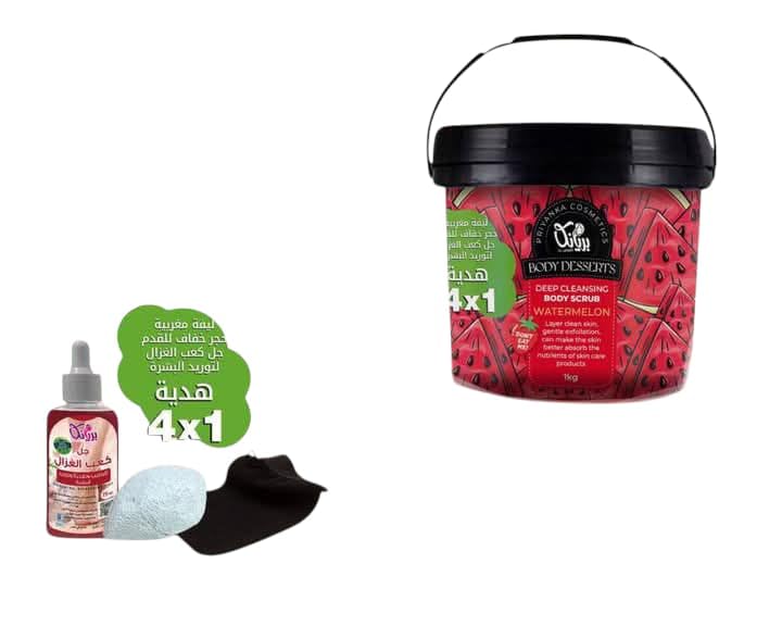 Generic - مجموعه الحمام المغربى للجسم من بريانكا 4*1 تتكون من سكرب مقشر بطيخ / ليفه / حجر خفاف / جل كعب الغزال