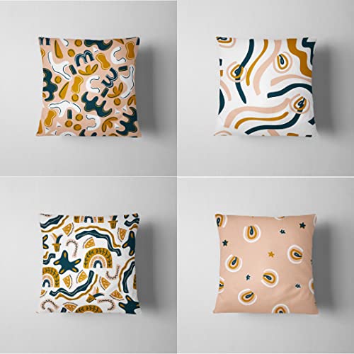 Craftima - 4 وسائد ديكورية كوشن باترن بوهو مع خداديات الحشو من السوفت فايبر بالوان البينك و البنى مقاس 40*40 سم كرافتيما