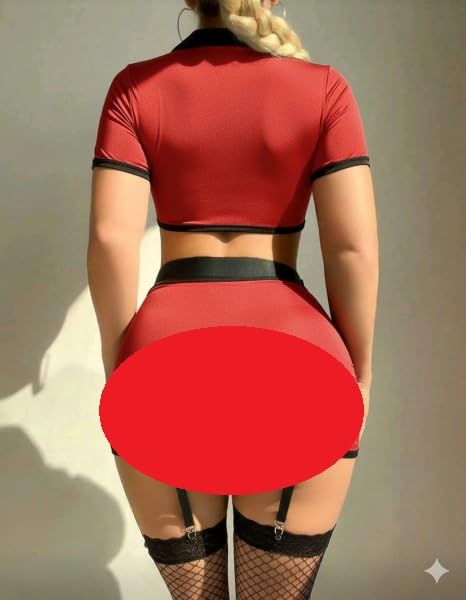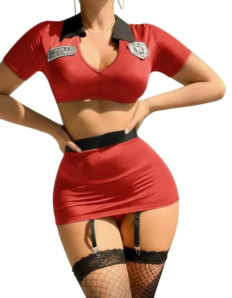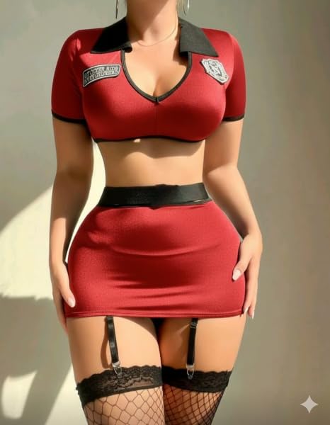 Generic - لانجري تنكري مثير 797 بتصميم زي شرطية جذاب مع شرابات شبكية مناسب للإطلالات التنكرية من كيان للتجارة والتوزيع، طقم من 4 قطع