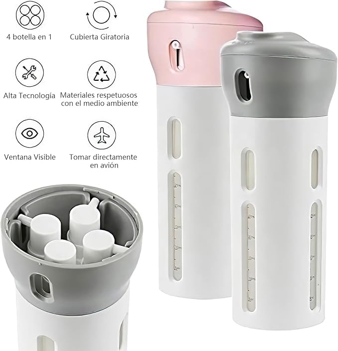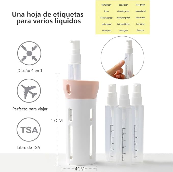 Generic - زجاجة توزيع للسفر 4 في 1، معتمدة من ادارة امن المواصلات الامريكية، تتضمن اربع زجاجات فارغة قابلة لاعادة الاستخدام