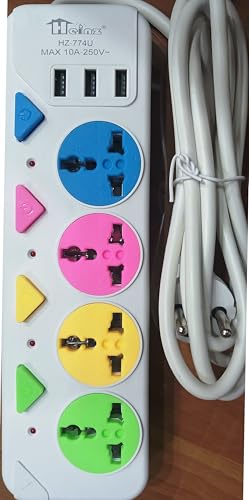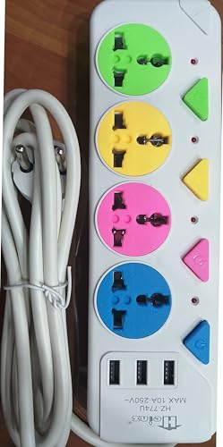 Generic - مشترك كهرباء/4 عين فيشة ثلاثية يونيفرسال لجميع الأشكال و إنجليزى MK + عدد 3 شحن USB/قدرة 10 أمبير بسلك 2متر/مفتاح بلمبة بيان تشغيل لكل عين على حدى / للكمبيوتر و الهواتف و التليفزيون