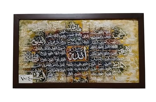 Generic - لوحة قماش قطيفة اسماء الله الحسنى بيج خامات عالية الجودة فريم خشب طبيعى بنى مقاس 40 * 70 سم