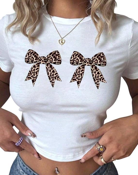 Generic - تيشيرت حريمى مع فيونكتين انيتين تيشيرت رياضي فضفاض مريح لاطلاله انيقة مليئه بالنوثه والتالق من كيان للتجاره والتوزيع كود 4011
