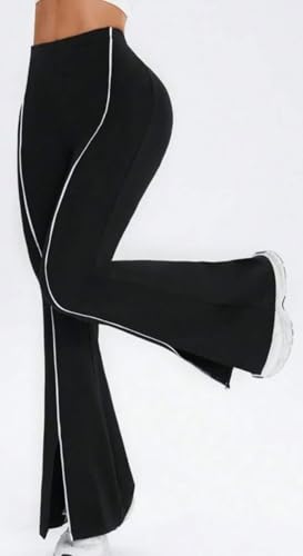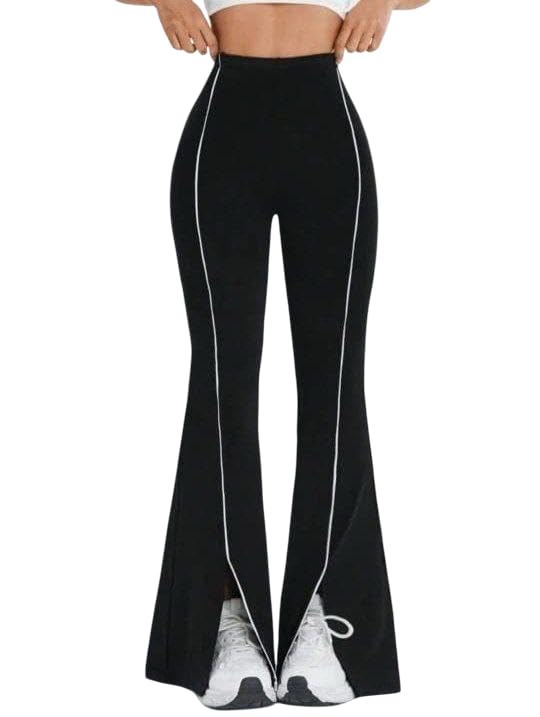 Generic - بنطلون حريمي شارلستون رياضي مع فتحة امامية جذابة، بنطلون أسود بخطين أبيض من الأمام، واسع وعصري لإطلالة كاجوال أو للتمارين من كيان للتجارة والتوزيع كود 4015