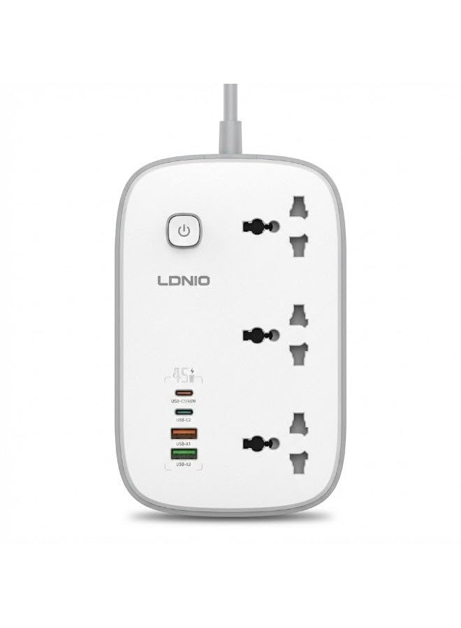 generic - شريط طاقة ذكي 45 واط - شحن سريع، 3 مقابس و4 منافذ USB (2 نوع سي بي دي)، سلك 2 متر، 3250 واط، للمنزل والمكتب، للحماية من الحرائق - موديل SC6