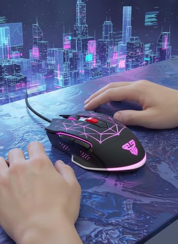 Generic - ماوس جيمنج سلكي ماكرو بدقة 4800 نقطة لكل بوصة - ستة ازرار قابلة للبرمجة مع اضاءة RGB متعددة الالوان تصميم هندسي عصري للالعاب الاحترافية - فانتك X7