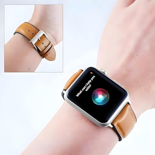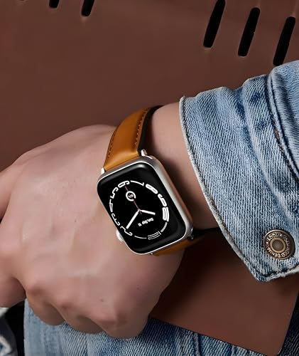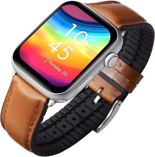 Next store - سوار ساعة جلد من نيكست ستور، متوافق مع ساعة ابل 49 ملم و45 ملم و42 ملم، سوار جلد من شمع داخلي من السيليكون متوافق مع ساعة ابل الترا/ الترا 2 SE SE2 سلسلة 9/8/7/6/5/4/3/2/1، (لون بني)