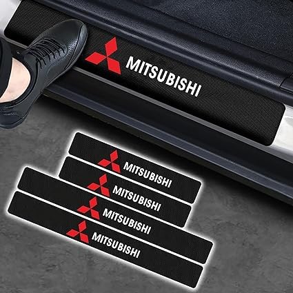 Generic - عتب ابواب السيارة من الياف الكربون لحماية الباب الامامي/ الخلفي ستيكرات لاصقة ديكورية واقية للباب من الخدش، متوافق مع سيارة ميتسوبيشي 4 قطع