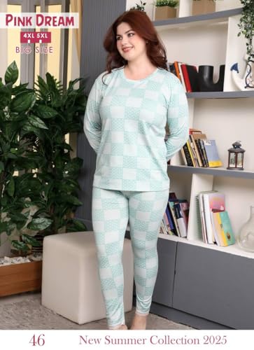 Generic - بيجامة حريمى قطن مقاسات خاصة ، أكمام طويلة، قطن ثقيل، طقم قطعتين للمنزل، مريحة للنوم (لبنى, 4X) تلبيس حتى وزن 80 kg