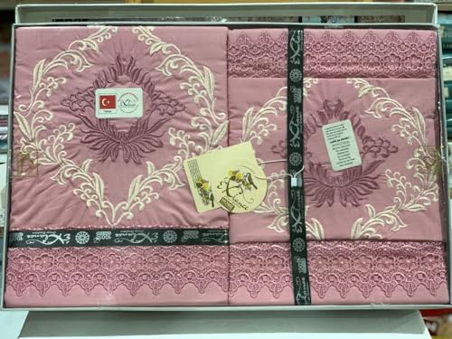 Generic - طقم ملاية سادة مطرز مطعم بالجوبير تركي - 5 قطع - مستورد - مقاس 240*260 سم - موديل _ 23