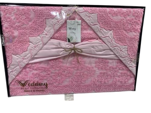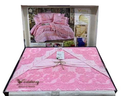 Generic - طقم ملاية سادة مطرز مطعم بالجوبير تركي - 5 قطع - مستورد - مقاس 240*260 سم - 30