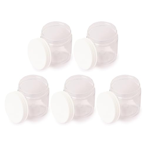 - 5 قطع برطمان ابيض شفاف دائرية - فوارغ اعاده تعبئة - علب بلاستيك