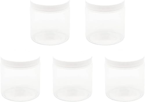 Generic - 5 قطعة برطمان بلاستيك شفاف حجم 250 ملي و قطر 7 سم - غطاء أبيض اللون و طبه بلاستيك - فوارغ بلاستيك عالي الجودة لاعادة التعبئة علب دائرية