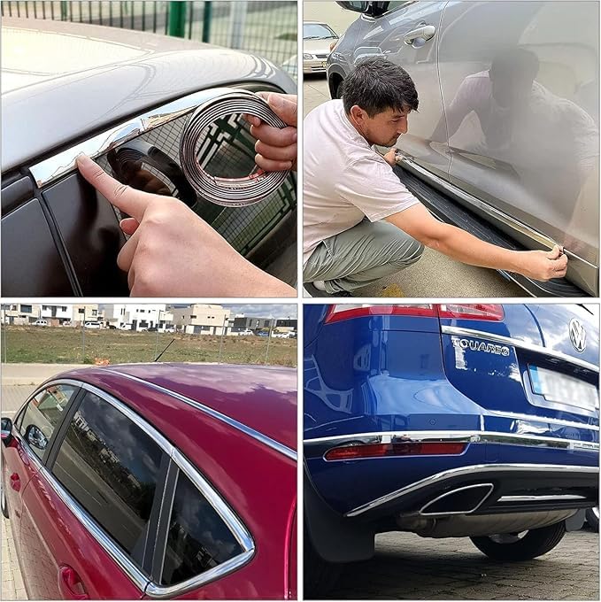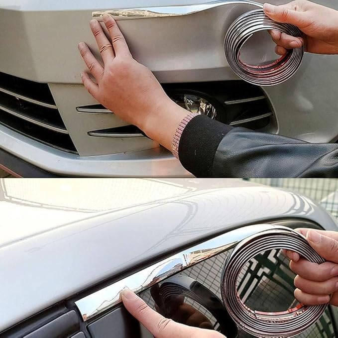 - ✅شريط لاصق حلية لتزيين السيارة ، يمكنك استخدامه بسهولة، مصنوع من الكروم وبلاستيك بي في سي، مناسب لتزيين وحماية الجزء الخارجي من السيارة مثل النافذة، والاكصدام، والشبكة.