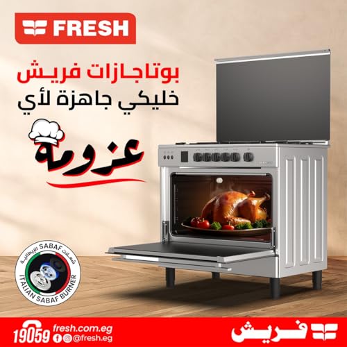 Generic - بوتجاز فريش 5 شعلة جامبو ستار 60/90 بعامل أمان فرن وشواية فضي سطح صلب