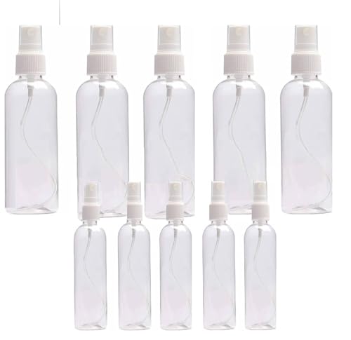 - زجاجات رذاذ صغيرة: مجموعة زجاجات رذاذ بلاستيكية تشمل 10 زجاجات بلاستيكية شفافة ومتينة وقابلة لإعادة الاستخدام بسعر معقول. 70 ملليلتر و30 ملليلتر.