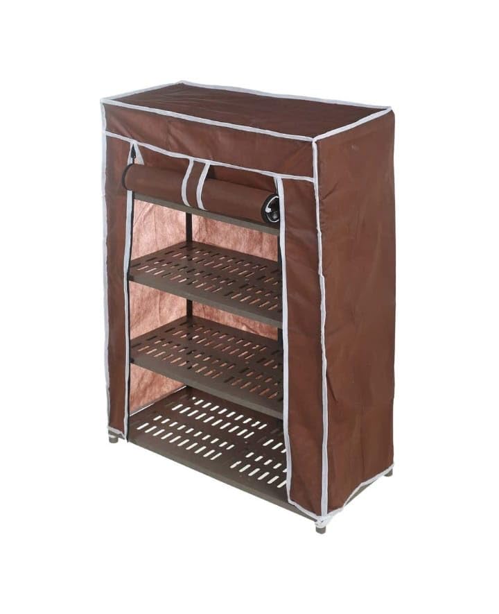 - التصميم: خزانة أحذية عملية مع 5 رفوف وغطاء قماشي بني اللون مع إطار أبيض