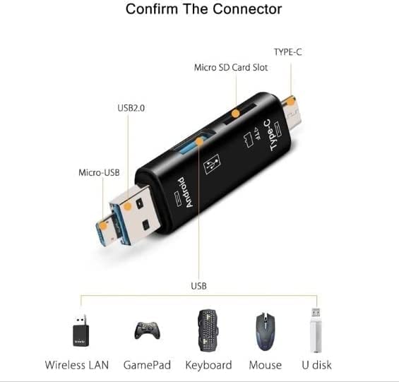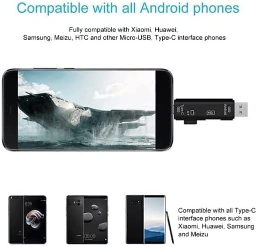 Generic - قارئ بطاقات ذاكرة 5 في 1 متعدد الوظائف بمنفذ USB 2.0 نوع C/USB/Micro USB/Tf/SD